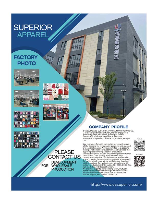 We are an expert manufacturer , mainly engaged in producing caps,hats,scarf,gloves ,The chief markets of our products are the US, Canada, Europe, South America,etc.